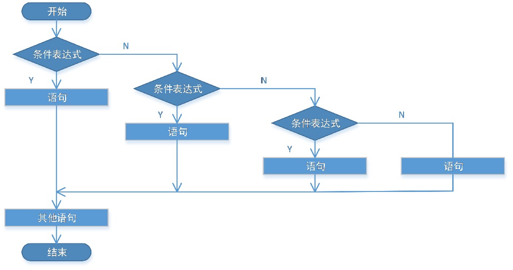 if(条件表达式1) { //语句1 } else if(条件表达式2) { //语句2 } else if(条件表达式3) { //语句3 } else { //语句4 }1