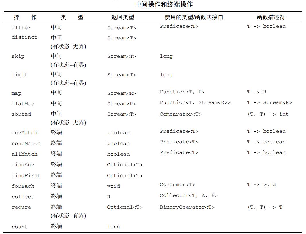 collect(Collector c) | 将流转换为其他形式。接收一个Collector接口的实现,用于给Stream中元素做汇总的方法 |