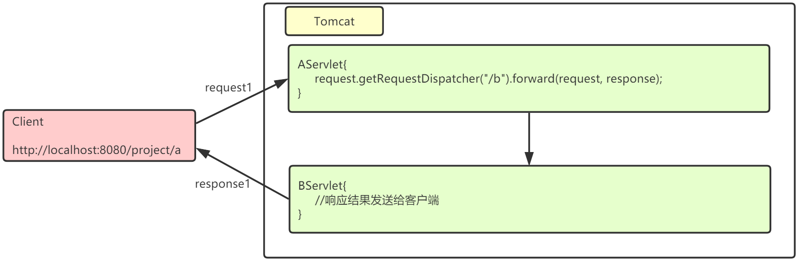 - 请求转发对AServlet和BServlet的请求方法是相同的,即要么都是GET,要么都是POST,因为请求转发是一个请求